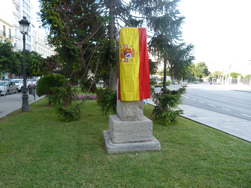 El Monolito con la placa en Homenaje a DON ANGEL SANZ BRIZ, antes de retirar la Bandera de España.