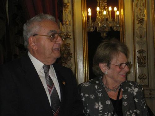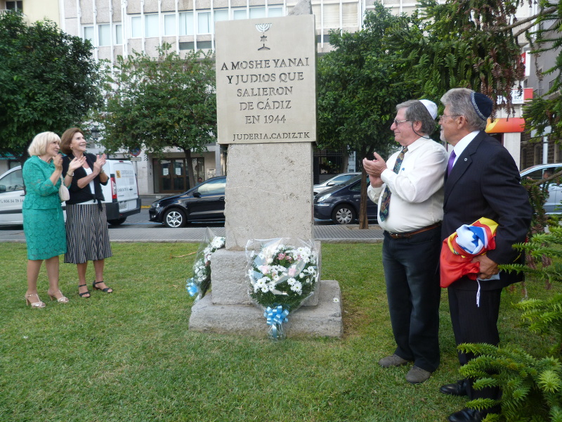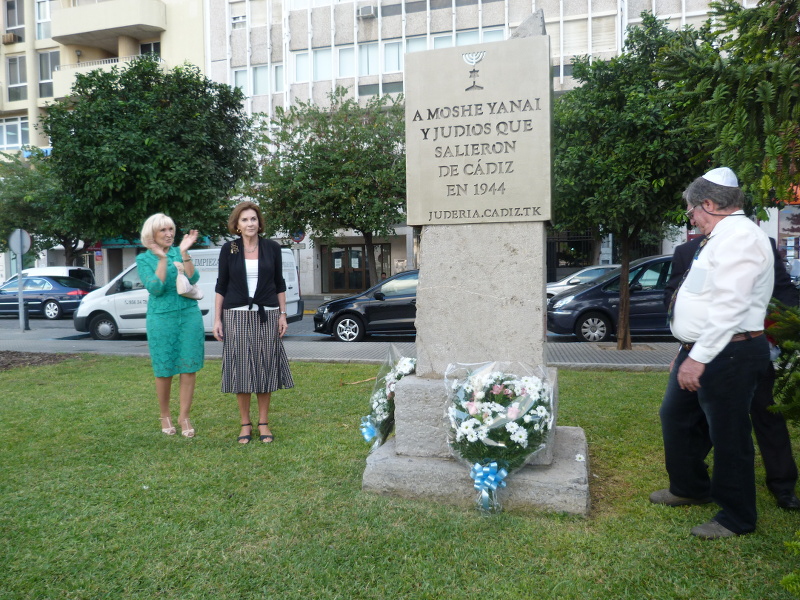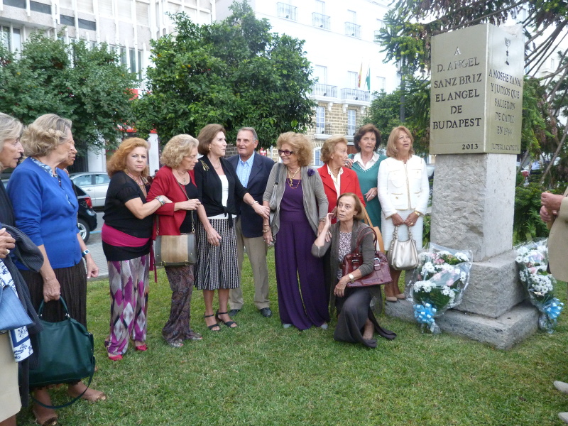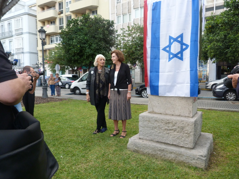 Doña Adela con Doña Azucena Cigüela Carnicer, después de la ofrenda floral, aparece Don Josef Mor de Israel, cuñado de Moshe Yanai.