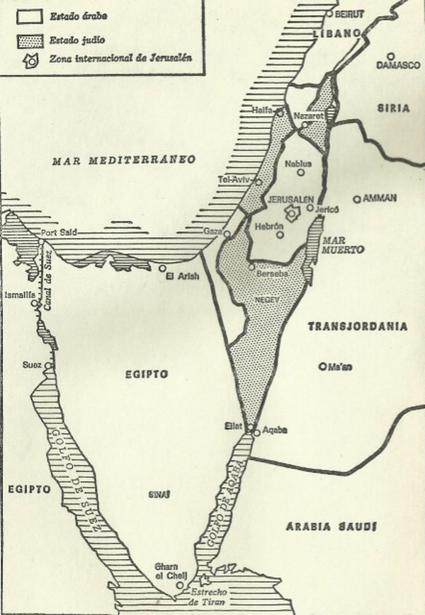 Plan de reparto de Palestina entre un estado árabe y otro judio. Votación de la ONU el 29 de noviembre de 1947