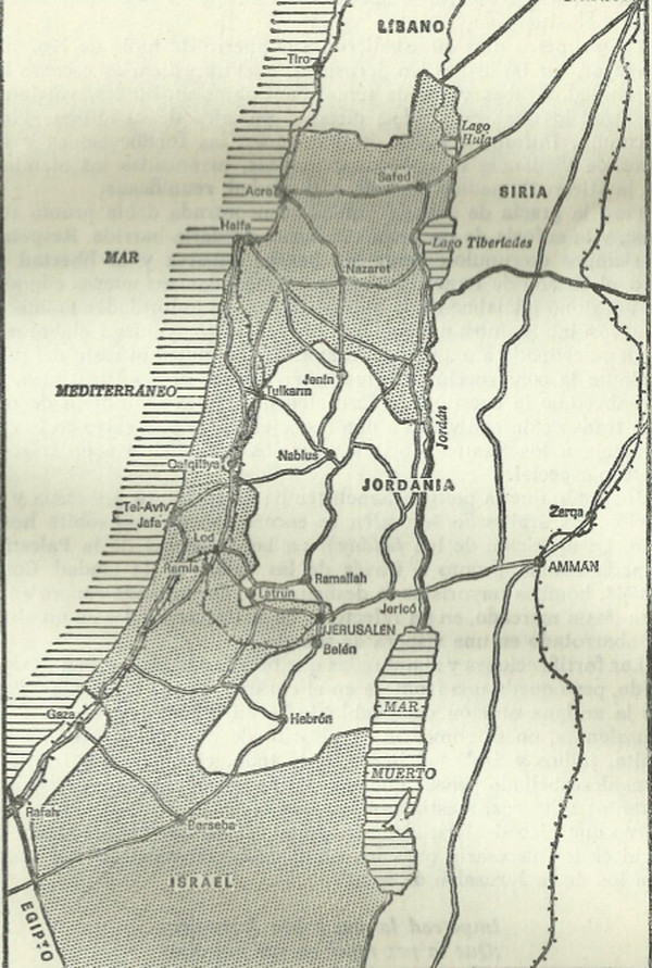 El estado de Israel y la Palestina Árabe al final del conflicto (Armisticio de Rodas 1949)