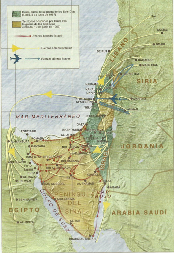 Mapa de LA GUERRA DE LOS SEIS DIAS, del Libro de Michael B. Oren