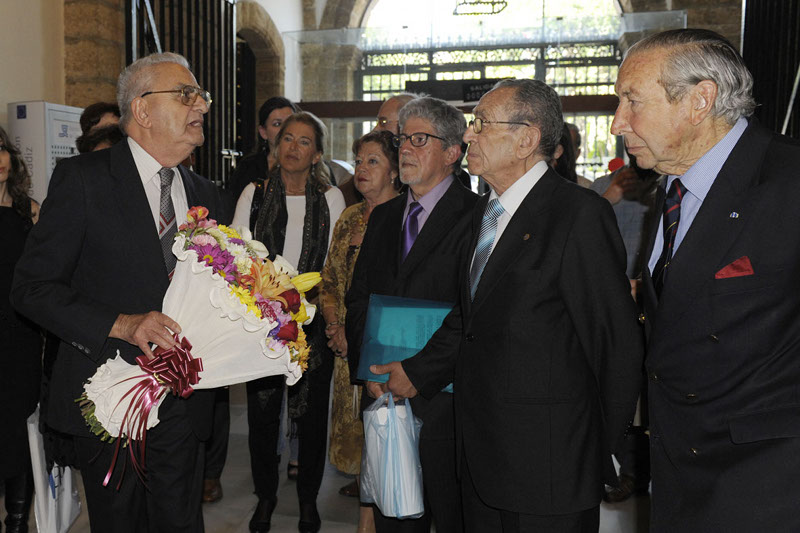 En la foto se le puede apreciar junto a Don Samuel Barchilón y Moshé Yanai, ambos fallecidos, a quienes tenga Dios en su gloria. En el acto del Homenaje en la Diputación Provincial.