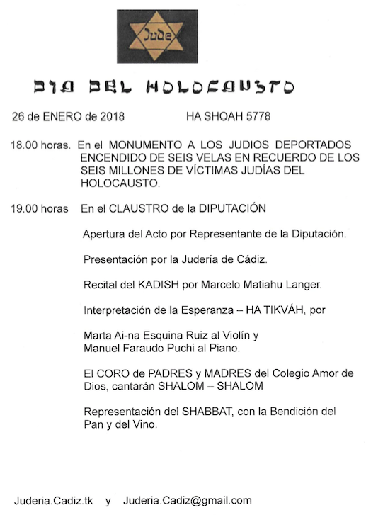 El pasado día 20 de Diciembre de 2017, al finalizar la HANNUKAH, o Fiesta de las Luces, encendimos en el Monumento a los Judíos el Candelabro de 9 brazos o Hannukía, cada vela la encendió una persona. Esta fiesta conmemora la recuperación del Templo de Jerusalem, por Judas Macabeo.