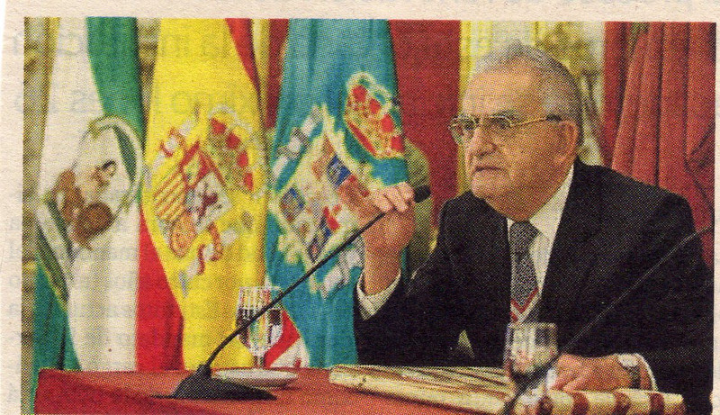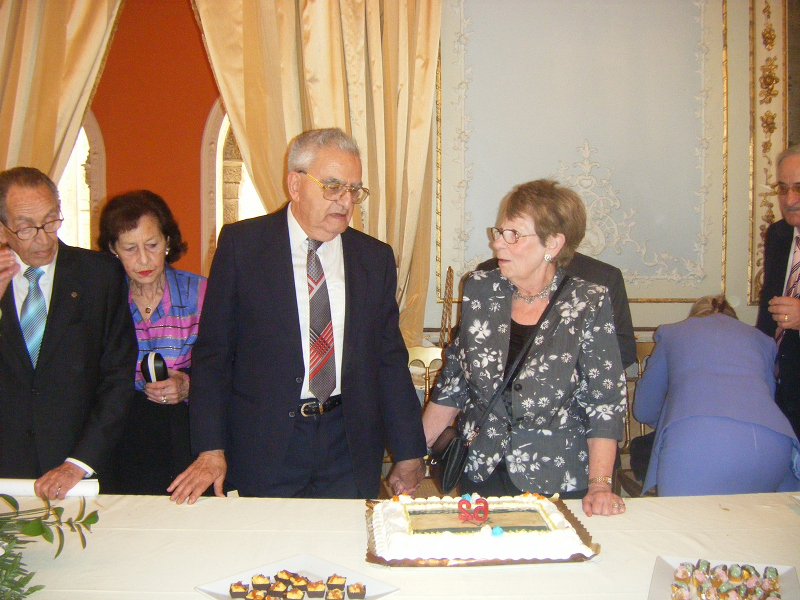 Asi mismo las Autoridades Municipales, Don José Blas Fernandez y Don Bruno Garcia de León, lo recibieron en el Ayuntamiento, en compañía de Don David Chocrón Cohen y de quien esto escribe. La Exclma. Sra. Alcaldesa Doña Teófila Martinez, asistió a la despedida en el Hotel Playa, compartiendo un ameno encuentro con Doña Susi Cigüela, Don Fernando Delado Lallemand, el Honorable Don Salomón Seruya, Exembajador de Israel, y quien esto escribe. A continuación de la visita al Ayuntamiento, le enseñamos la Casa del Almirante, la casa de la calle Cristobal Colón, Oficina de Rehabilitación, joyas de la arquitectura Criptojudía. Disfrutó del recorrido por el centro,en especial el mercado, donde en una de sus cafeterías hicimos una pausa. Para hacer tiempo y llegar al Casino Gaditano, donde preparamos un buffet de comida Sefardita, de la que fueron artífices las Sras. Rosa Gonzalez, Susi Cigüela, Silvia Mielnik y Noemí Chocrón. Fue un acontecimiento extraordinario, que llenó de felicidad a Moshé y a su Sra. Sara. Como colofón, fuimos a la Diputación Provincial, donde a la entrada y ante la Placa en Homenaje a las Víctimas del Holocausto, Moshé hizo un homenaje floral y dirigió unas emotivas palabras «Baruj…. Posteriormente subimos al Salón Regio que las autoridades gustosamente ofrecieron. La Diputada Srta. Naval, en representación de la Exclma. Diputación Provincial, presidió el acto, pidiendo disculpas a Moshé Yanai, a él en representación de todos los que en 1944 fueron Deportados desde Cádiz. En la mesa presidencial les acompañó el Honorable Don Salomón Seruya. Quien esto escribe hizo la presentación del acto. Mencionando que Moshé era como el protagonista de una novela, al que habíamos conocido en persona. A continuación la Periodista Doña Pilar Vera, le dió un Diploma como Miembro de Honor de la Asociación de la Prensa de Cádiz. Así como la Decana del Colegio de Licenciados en Letras y Ciencias, Doña Virginia Pinto, le entregó un Diploma confeccionado por el Artista Flaviano Pinto, nombrándolo también, miembro de honor.
