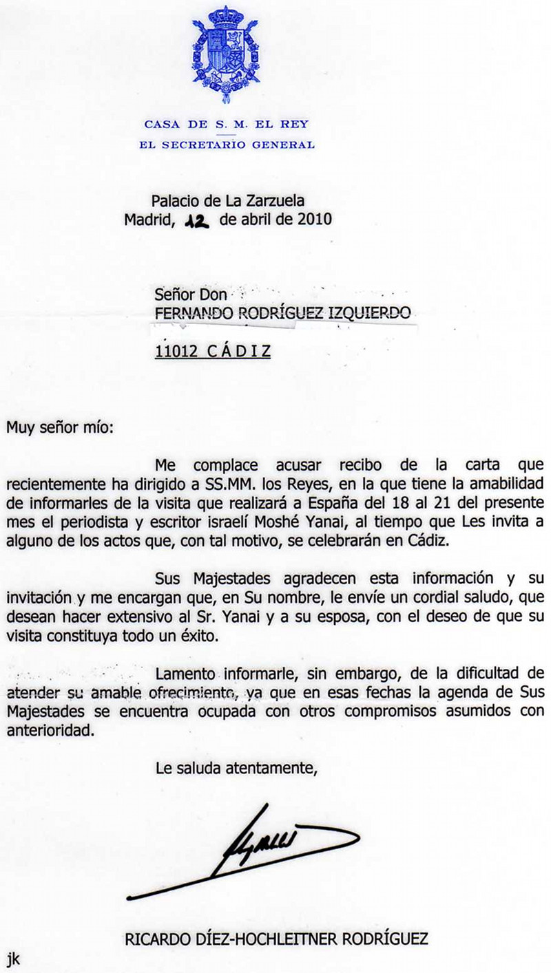 una hija del Príncipe Judío Natronai, de la Tribu de David. Y por lo tanto Rey de los Judios. Le comunicamos el homenaje a Moshé Yanai, así como los motivos y que en su persona lo hacíamos a todos los que como él habían sido Deportados de España. Se unió al homenaje mandándoles un cordial saludo.